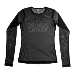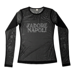 This long sleeve black t-shirt from J'Adore Napoli's collection is made of 100% cotton for a comfortable fit. It features a stylish strass print, adding a touch of glamour to your wardrobe. Perfect for any occasion, this t-shirt is a must-have for any fashion-forward individual.