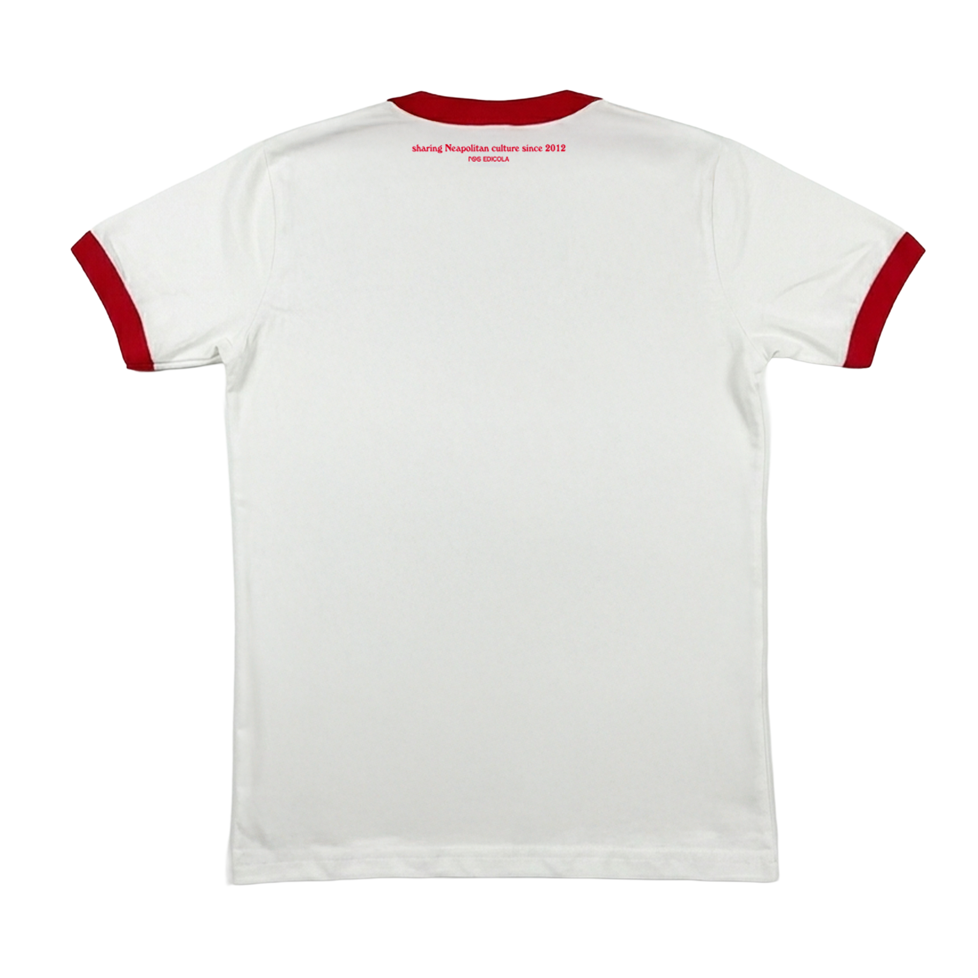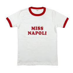 This apparel product from the J'Adore Napoli collection features a white and red color scheme and is made of 100% cotton. It boasts a regular fit and is adorned with a silkscreen print.